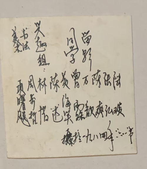 项飙书写竖体赠言:广小老师同学们,我在这里接受了我的启蒙教育,感受到学校附近周边丰富的社会生活,给我未来几十年的探索提供了基础,希望你们都在广小找到,发现并且发展自己的学业与人生的基石。