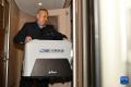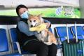 4月14日,在山东烟台站,旅客把宠物狗放进专用宠物运输箱。新华社发(孙文潭摄)