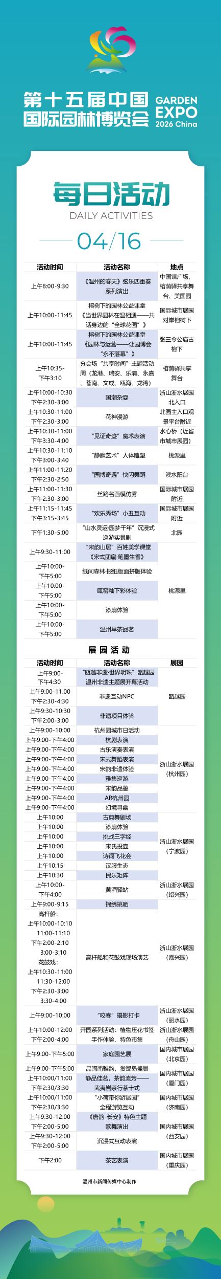 一表在手,活动全有!园博会4月16日活动发布