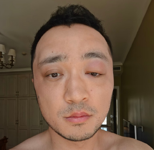4月15日,主持人尼格买提晒出自己眼部肿胀的照片并配文:别染发。