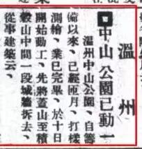 《温州中山公园已动》,《民国日报》1928年5月15日,第7版