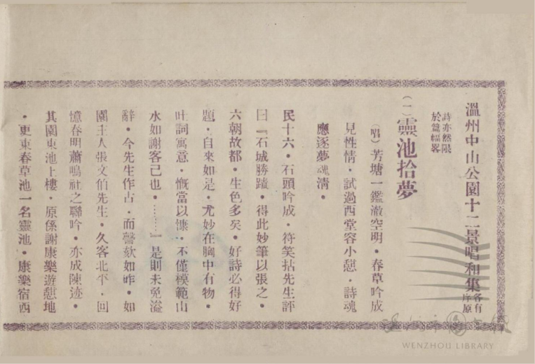 《温州中山公园十二景唱和集》1931年铅印本,温州市图书馆藏。