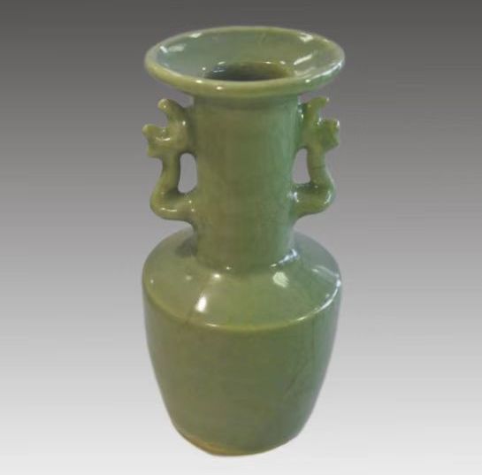 南宋龙泉窑粉青釉凤耳瓶