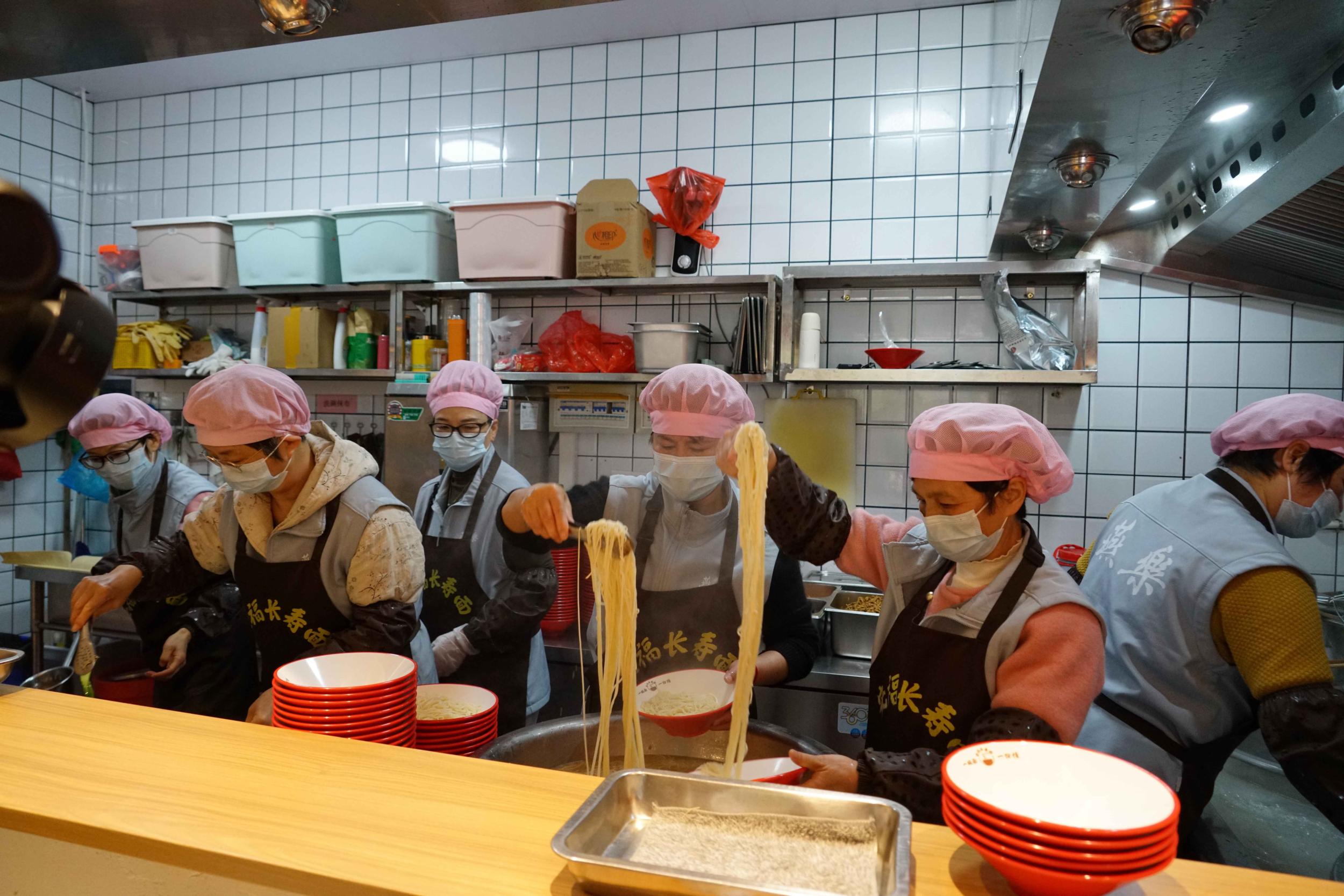 去年4月,安福长寿面馆便在松台山脚下热闹开张。附近老人、环卫工人、保安大叔、外卖小哥、医院护工……只要走进面馆,都能免费享用这碗热面。