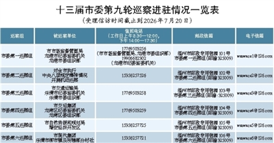 据悉,巡察组将在被巡察单位工作3个月左右,期间设立专门值班电话、邮政信箱和电子邮箱,接受干部群众来信来电来访,巡察组受理信访时间截止到2026年7月20日。