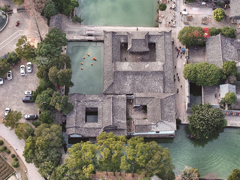 在苍坡古村,当工作人员道出“文房四宝”的布局玄机——笔街直指笔架山,五石条为墨,莲池作砚,方正村域为纸,将耕读文化、生态安全、公共生活完整融入园林格局,这让专家们连连惊叹。