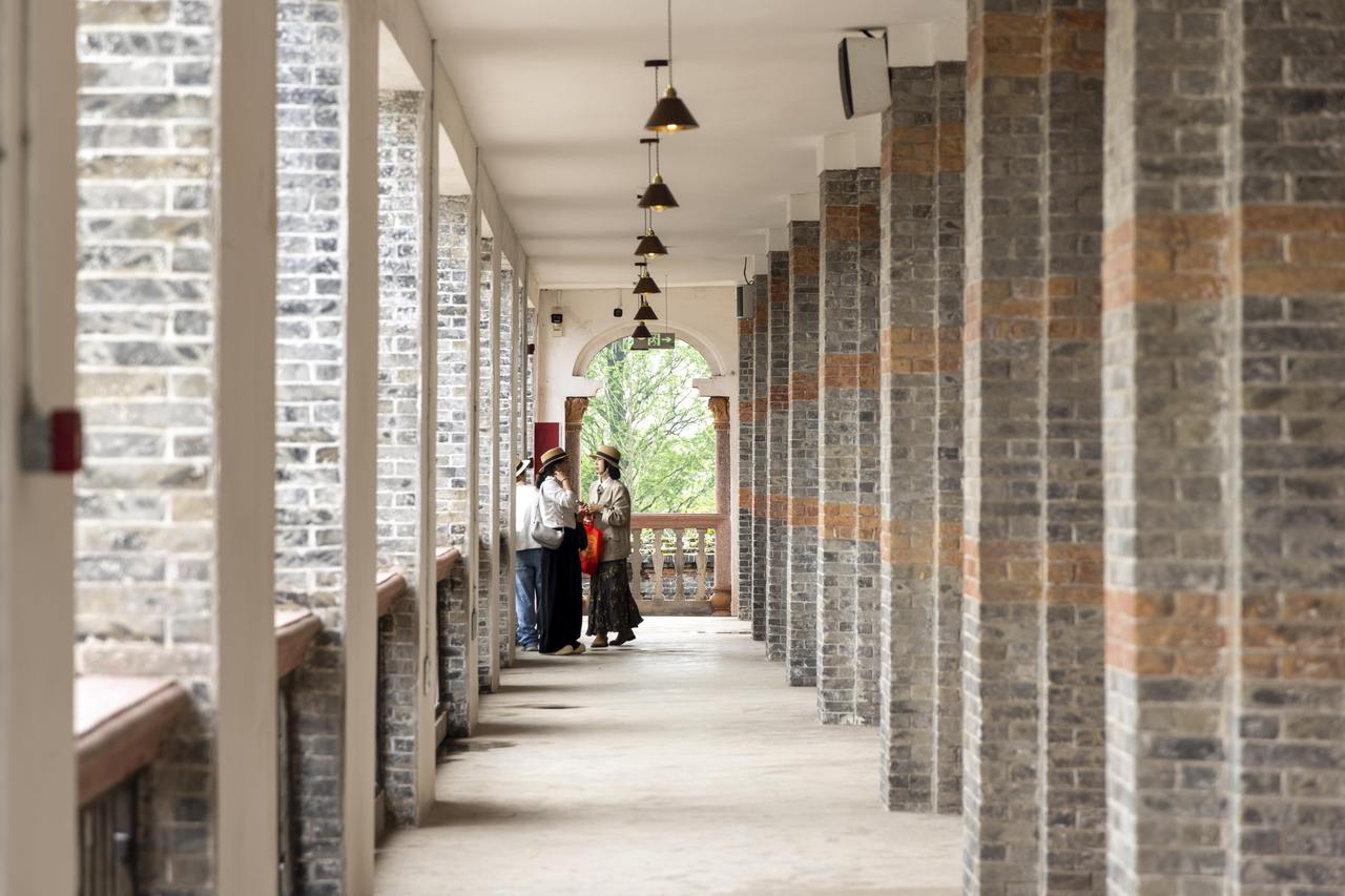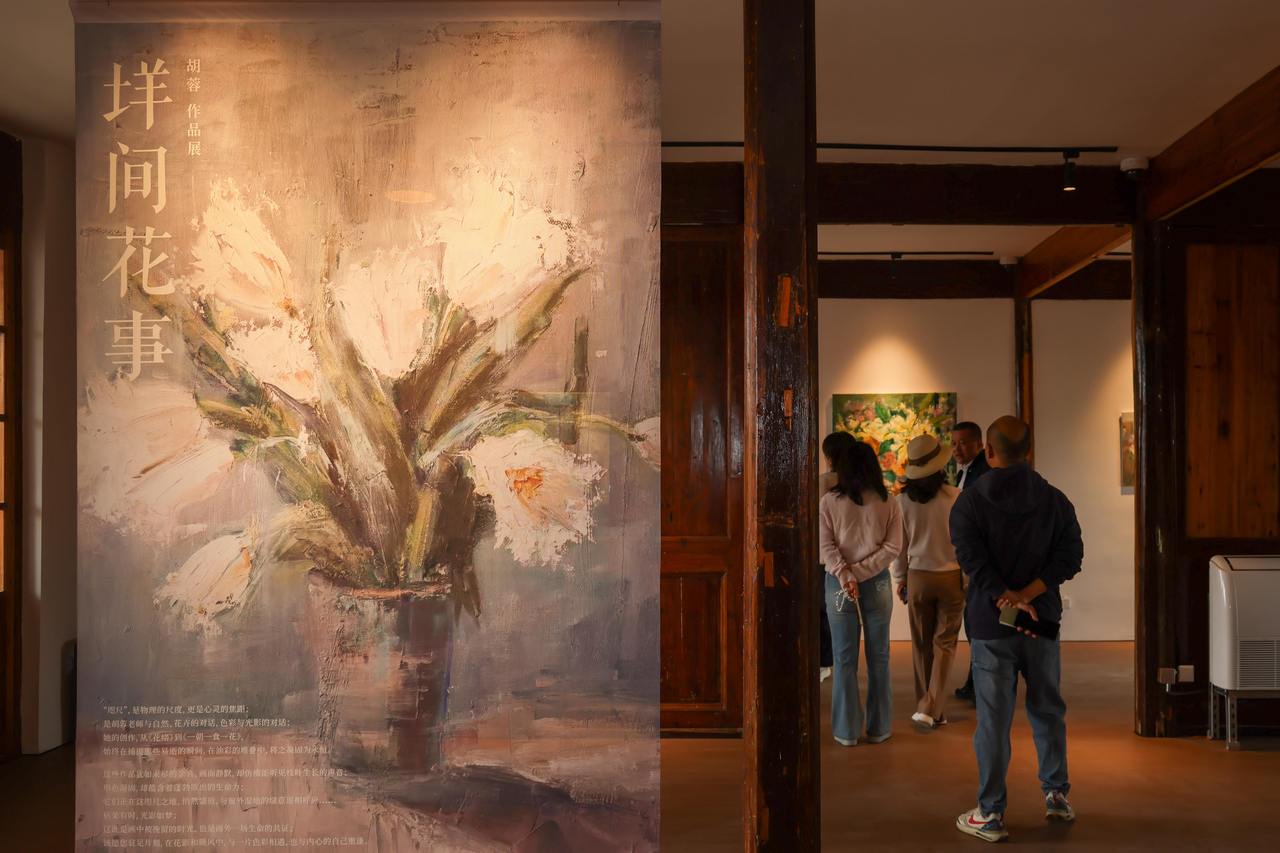 “我们不仅修旧如旧,还希望实现文物活态利用。”温州生态园管委会相关负责人介绍,周氏旧宅修缮完成后,项目创新引入“一尺花园”品牌,要求改造后的空间充分尊重历史痕迹:晚清院落中的水池、移植的绿植营造出静谧氛围;昔日居住空间变为客座区,梁枋、隔墙乃至传统神龛均被保留;民国主楼开阔的连廊与拱券下,咖啡香气弥漫。值得一提的是,主楼二层被专门开辟为公益艺术展厅,首展《垟间花事》油画作品展,画作与窗外湿地景致遥相呼应,使建筑本身成为可阅读的“展品”。