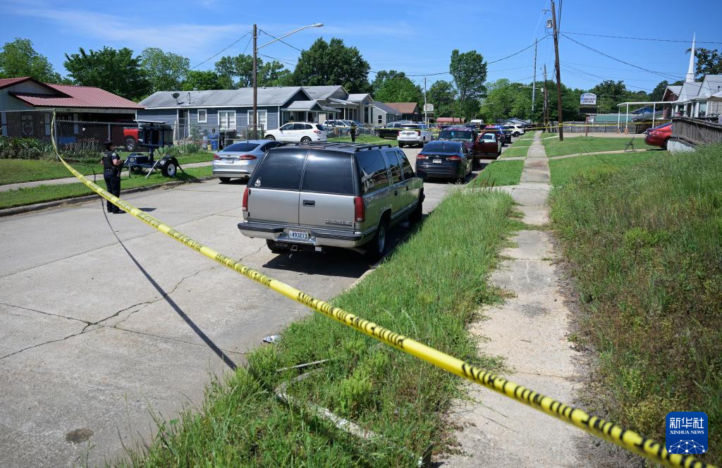4月19日,在美国路易斯安那州什里夫波特市,警察封锁枪击事件现场附近街道。美国路易斯安那州什里夫波特市4月19日发生一起群体性枪击事件,造成8名儿童死亡,枪手被警方击毙。新华社/美联