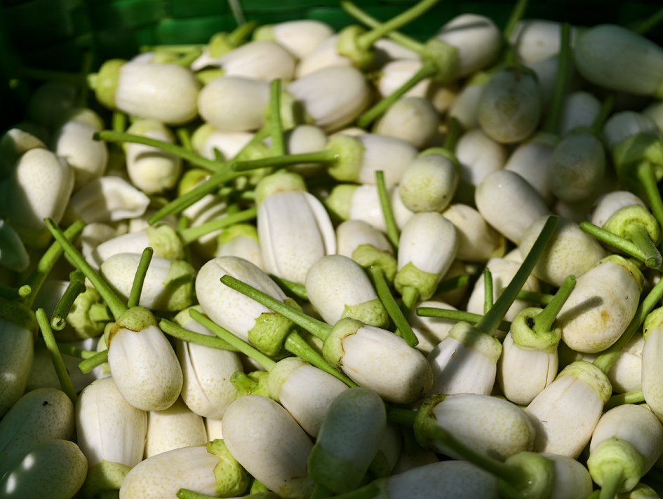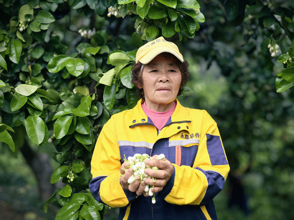 “最早是农业专家来教怎么留、怎么摘,现在自己都会了。”郑笑微家有十多棵柚子树,自家花已经摘好,这几天来基地帮忙采摘。她说,过去不懂疏花,一个枝条上留一大串,结出的柚子又小又酸。现在大家都懂了,留得少,才能长得好。而摘下来的柚花,过去随手扔在地里烂掉,如今也成了“致富花”。