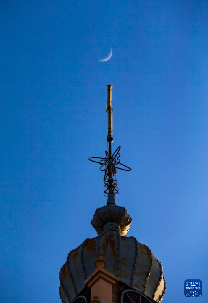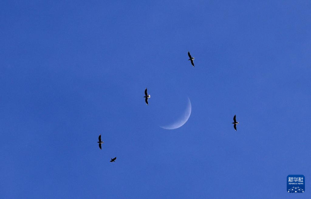这是4月21日在黑龙江省大庆市拍摄的峨眉月。吴大勇 摄