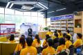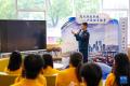 4月21日,在温州市瓯海区警营城市书房,温州海警局执法员赵海然在“真人图书馆”活动中与青年学生分享自己执行任务时的故事。新华社记者 江汉 摄