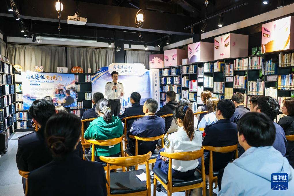 4月21日至22日,浙江省温州市多个城市书房举行“真人图书馆”分享交流活动。该活动由温州边检站、温州市图书馆联合温州海关、温州海事局、温州市公安局水上分局等单位的“真人书”分享者们发起,在城市书房内与温州市民、学生、港区工人等阅读者群体面对面对话,让参与活动者在聆听与互动中感受鲜活的职业故事、专业知识与温州这座海丝港城的文化魅力。新华社记者 江汉 摄