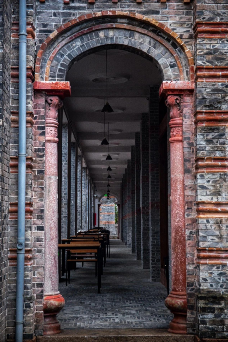 于是,在仍以传统木构民居为主的乡村水网间,一栋融合了西洋柱式、券顶门窗、石膏天花线与中式歇山顶、小青瓦的建筑拔地而起。它的北立面采用华丽的克林斯柱,南立面是优雅的爱奥尼柱,额枋上堆塑着中西花草浮雕,而二楼栏杆却是中式的宝瓶造型,地面则是精美的拼花石英水磨石。