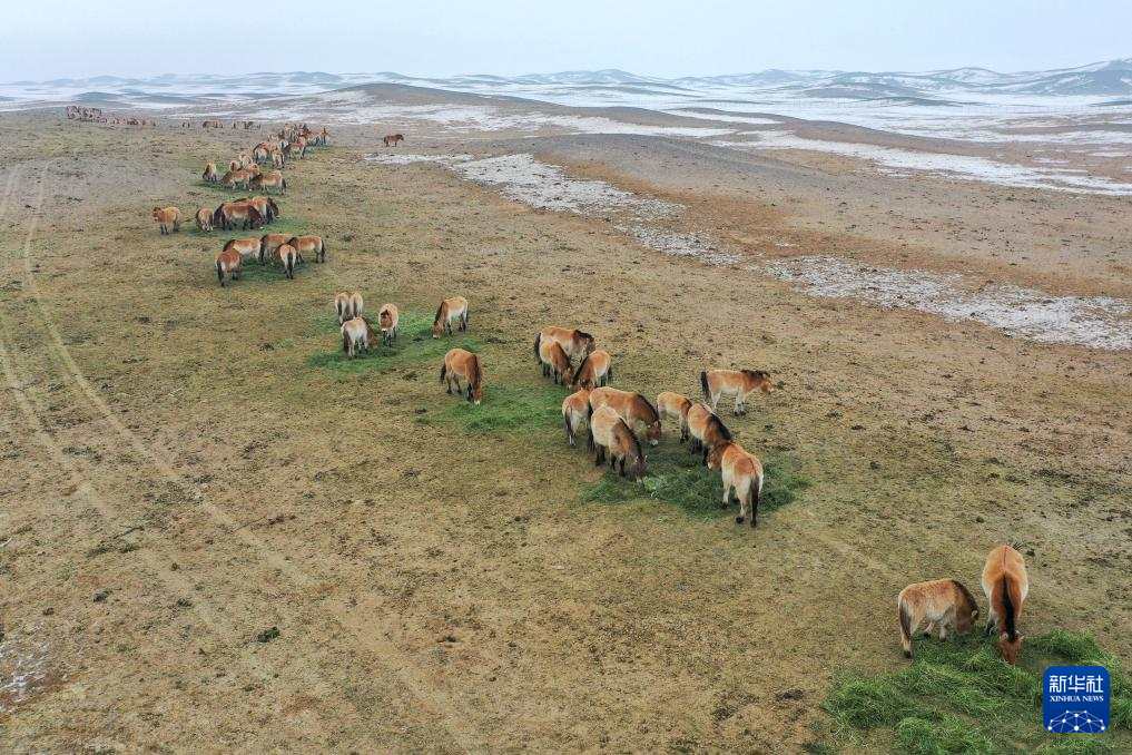 它们在围栏区内与冬季返回补饲的百余匹普氏野马自然融合。记者 丁磊 摄