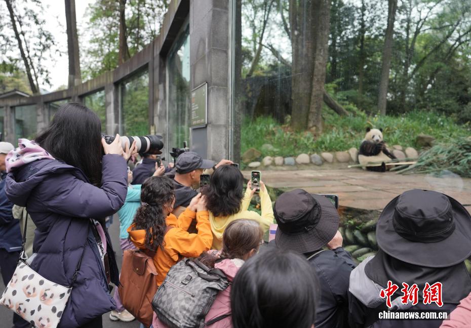 图为大熊猫“香香”和粉丝见面。中新社记者 安源 摄
