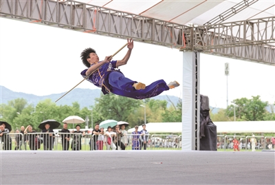 温州网讯 昨天上午,在楠溪江滩地音乐公园,第三届浙江省和美乡村武术公开赛暨2026年首届永嘉“武韵楠溪”国际武术大赛开赛。全国122支队伍、2000余名武术爱好者齐聚楠溪江畔“论剑”。
