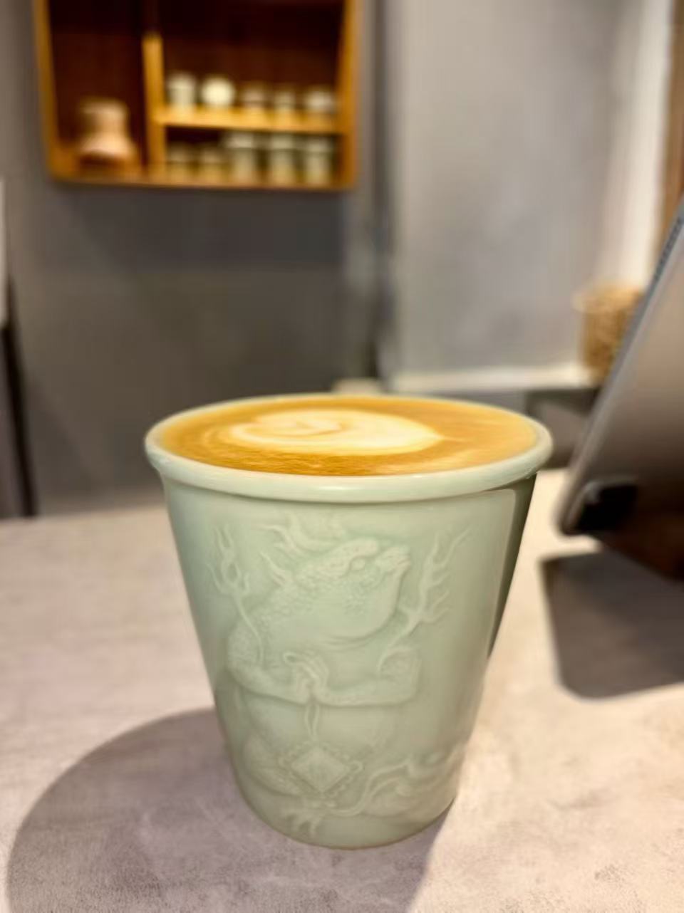 其中,“考古咖啡”系列尤为亮眼:将大红袍、水仙、肉桂搭配轻乳特调,以快闪轻饮的形式出圈。“这些颇受年轻人青睐的茶饮,曾创下单日热销两百杯的佳绩。用一杯新式茶饮、一只古窑器皿,让年轻人轻松亲近瓯窑文化。”“浙疆青瓷”工作人员介绍。