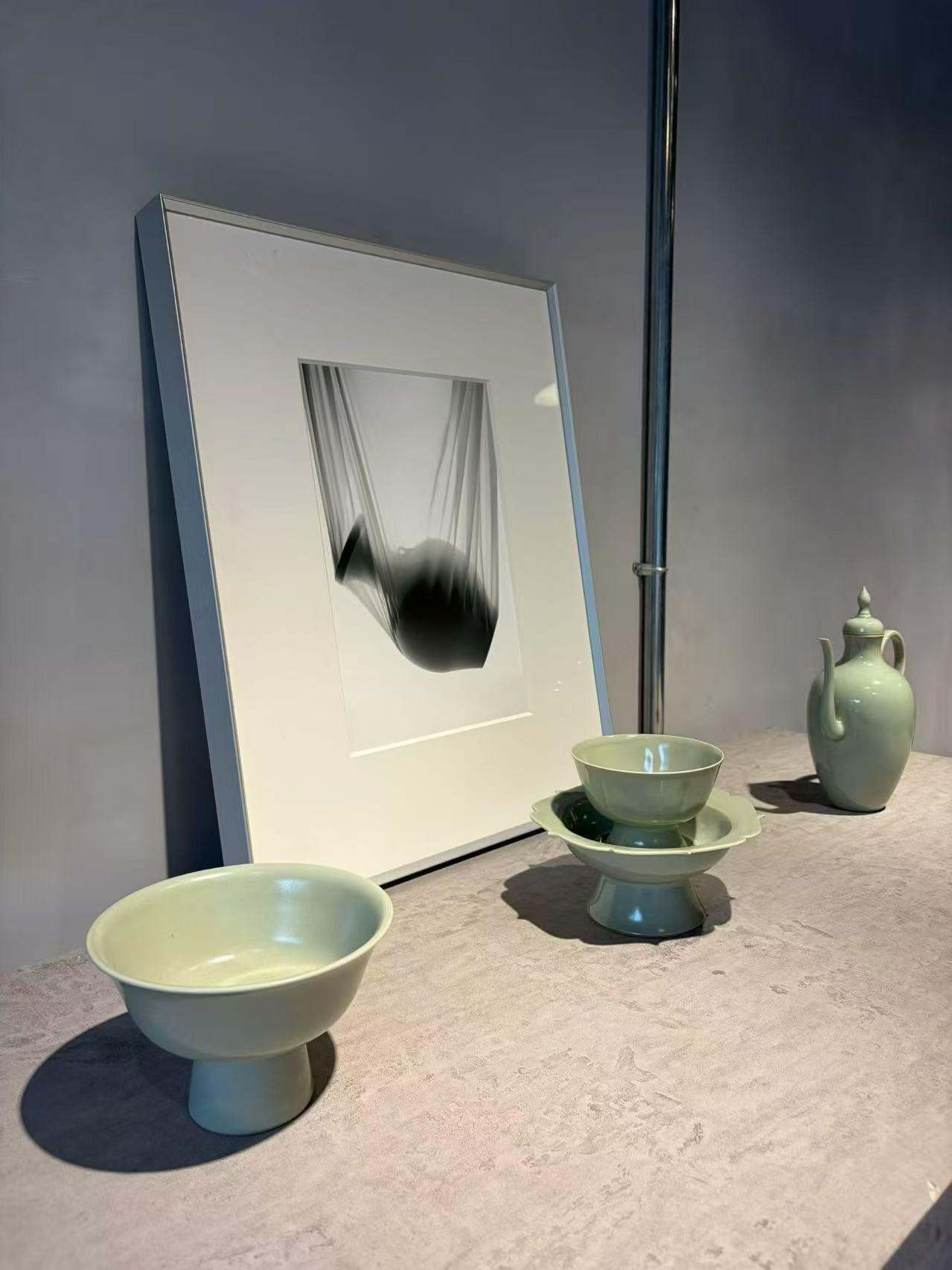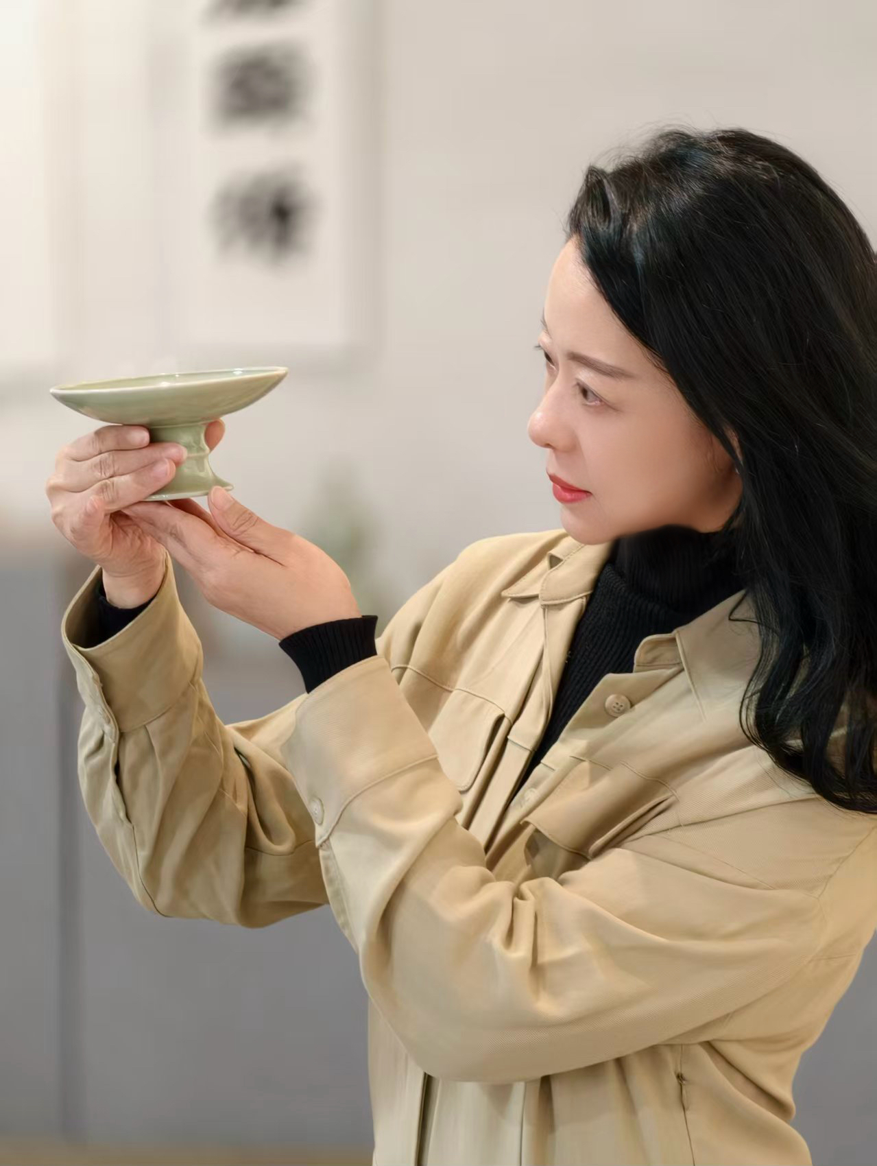 记者还发现,古港店里的几幅影像作品,也引得年轻客人驻足欣赏,从多元镜头视角感受瓷韵与光影交相辉映。原来这些作品出自于周一琦的女儿。二十几岁的她,就读于北京电影学院,全力支持母亲事业,时常用镜头记录作品,以光影表达“浙疆青瓷”的多元之美,让更多的年轻人爱上瓯窑。