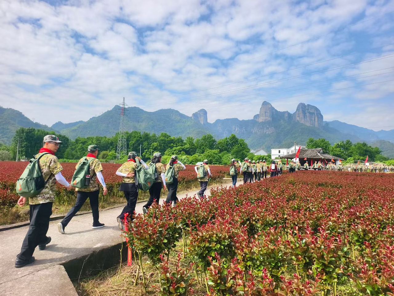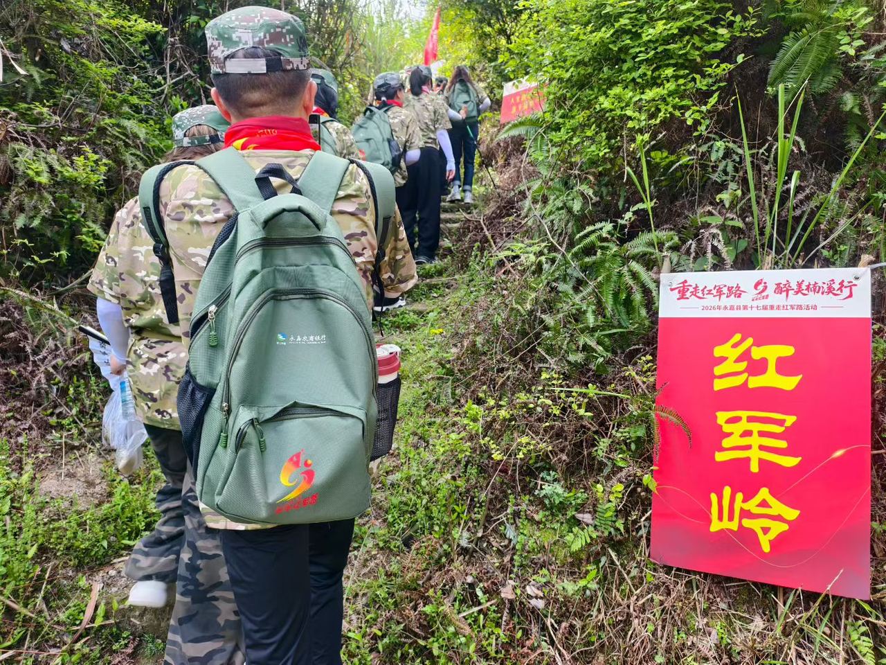 4月25日一早,2000多人的队伍统一着装,组成一条“长龙”,高举旗帜、唱着红歌,在永嘉县岩头镇的山头林间蜿蜒前行……他们从四面八方赶来,追寻先辈足迹,用脚步丈量信仰的高度,与九十多年前的红军足音形成历史的回响。