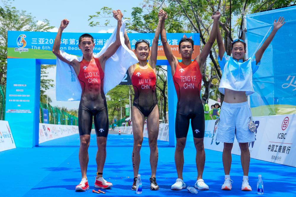 游跑两项比赛25日收官,完成亚沙会首秀。中国队的林鑫瑜、滕云峰、陆美伊、罗云康以1小时01分44秒夺得混合接力金牌,领先第二名中国香港队51秒。日本队获得季军。加上此前范俊杰、林鑫瑜分获男子、女子个人金牌,中国队包揽该项目三金。