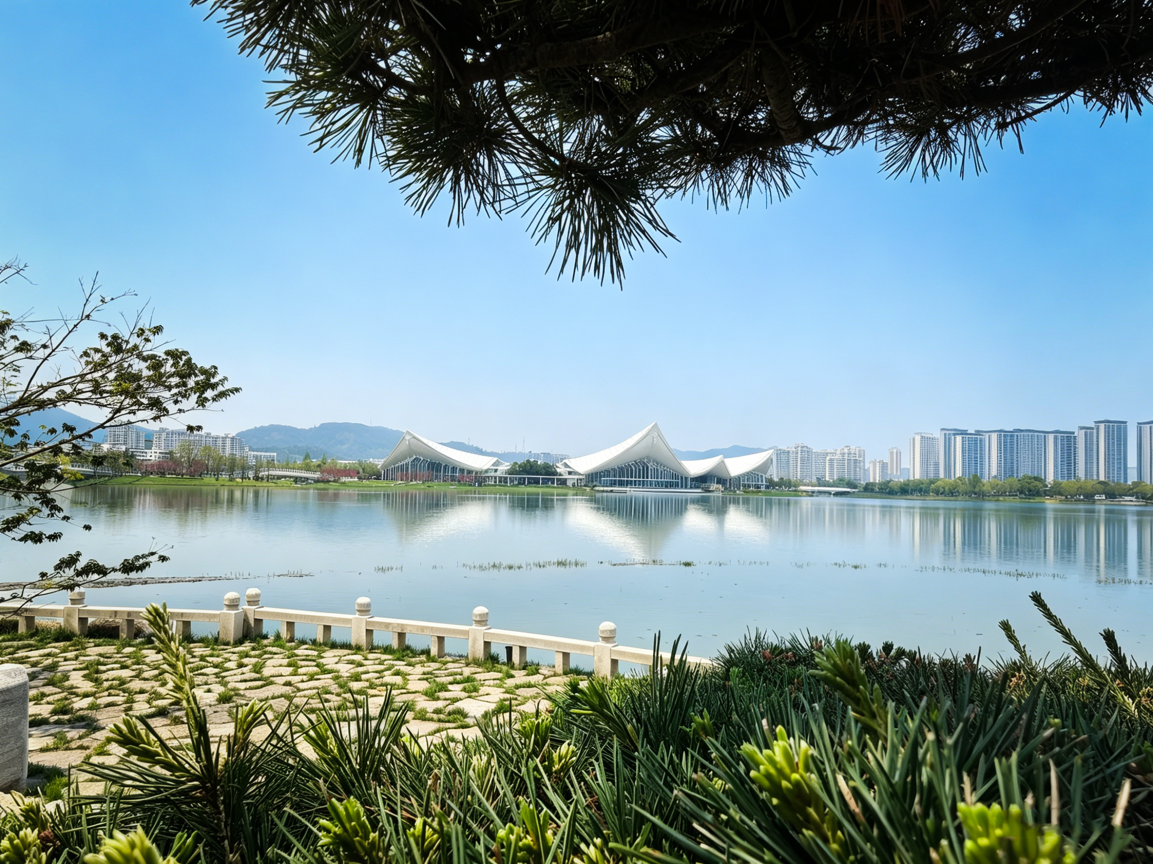 瓯越园里的花木搭配也是一大看点。为契合温州本土特色,建设团队精心选取了适宜当地气候、富有温州韵味的植物。“园内绿植以温州市树榕树、市花茶花为核心,搭配瓯柑、石榴、竹子、荷花、桂花、黑松等植物。”温州市城发集团工作人员吴胜洋告诉记者。通过榕树、瓯柑、竹亭、荷花等元素的组合,园内勾勒出谢灵运山水诗中的唯美意境,让“山水温州”的文化表达更丰满,也更为可触可感。